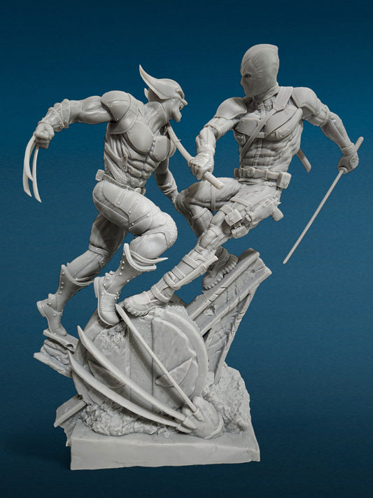 Deadpool v Wolverine 3D Resin Figurine: Unpainted Fan Art (10.5 Inch)